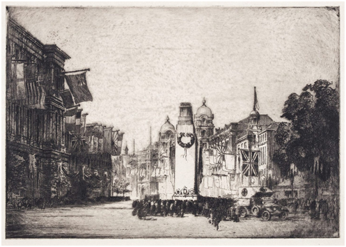The temporary Cenotaph, in an etching by William Monk, published in 1920